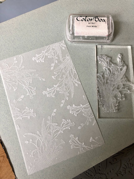 I started by stamping the vellum with white ink. The stamp was bought from a flea market last summer but never put to use yet.